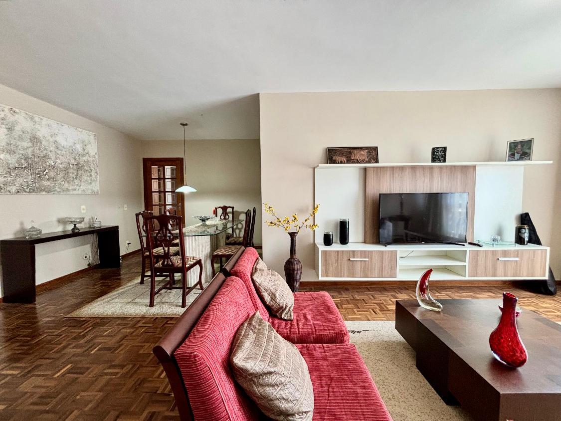 3 amplas salas integradas (estar, jantar e TV), criando um ambiente acolhedor e perfeito para receber amigos e familiares;