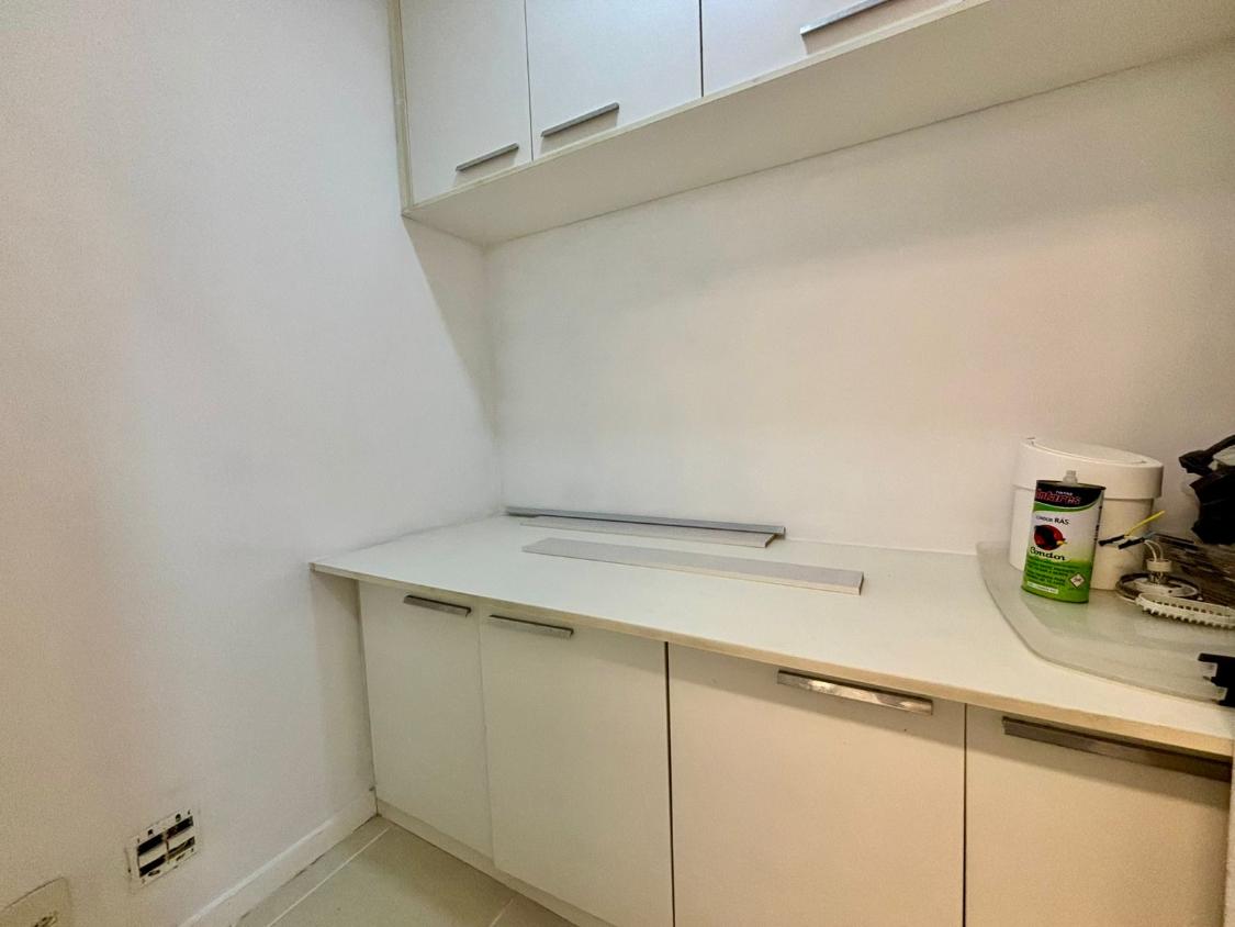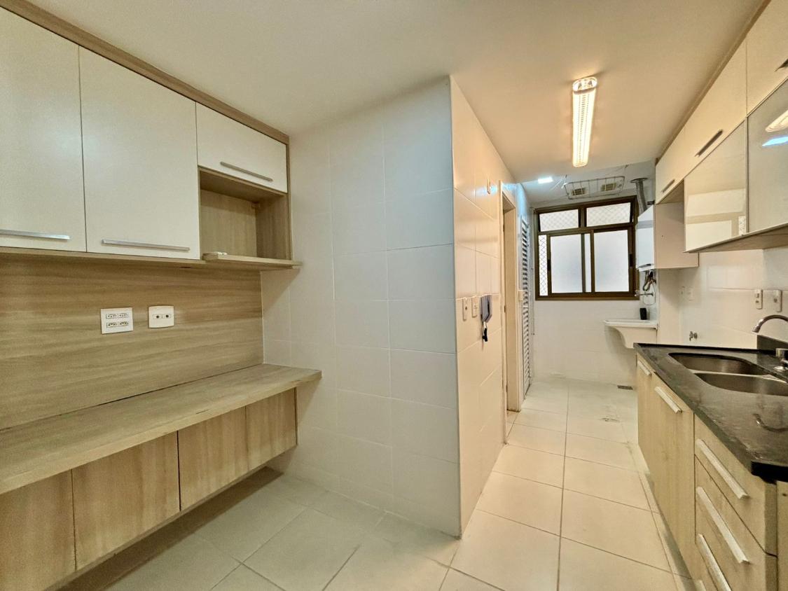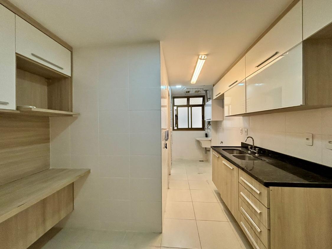 A cozinha planejada e equipada oferece praticidade no dia a dia. O imóvel conta ainda com banheiro social, dependência completa e 2 vagas de garagem escrituradas, garantindo comodidade e segurança.