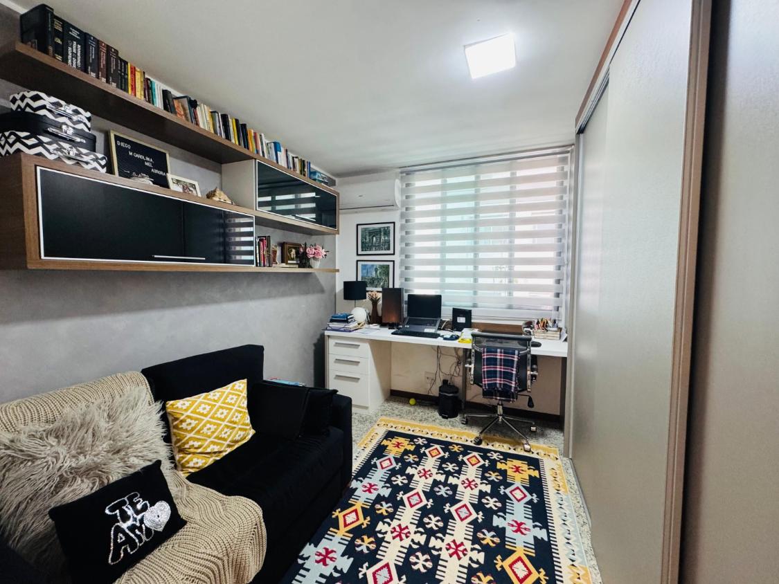 O imóvel conta com móveis planejados em todos os cômodos ? quartos, sala e cozinha ? e uma decoração impecável, de muito bom gosto. Está pronto para morar, oferecendo conforto, elegância e excelente aproveitamento dos espaços.