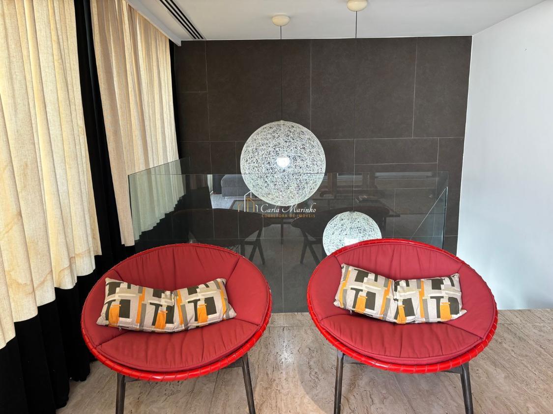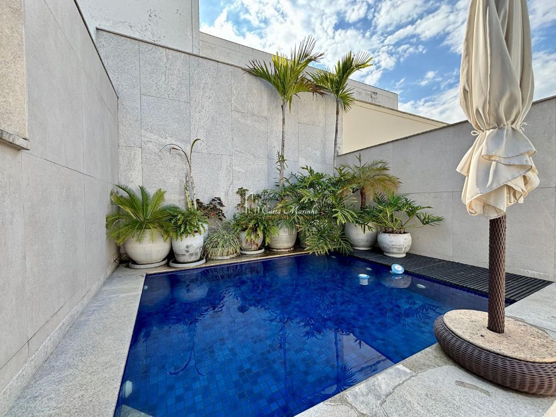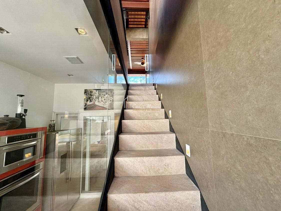 2 º Pavimento: Linda escada desenvolvida, Family Room (com Home Theater, servido por um lavabo, cozinha gourmet com cervejeira e mesa para 10 pessoas), piscina, sauna e banheiro.