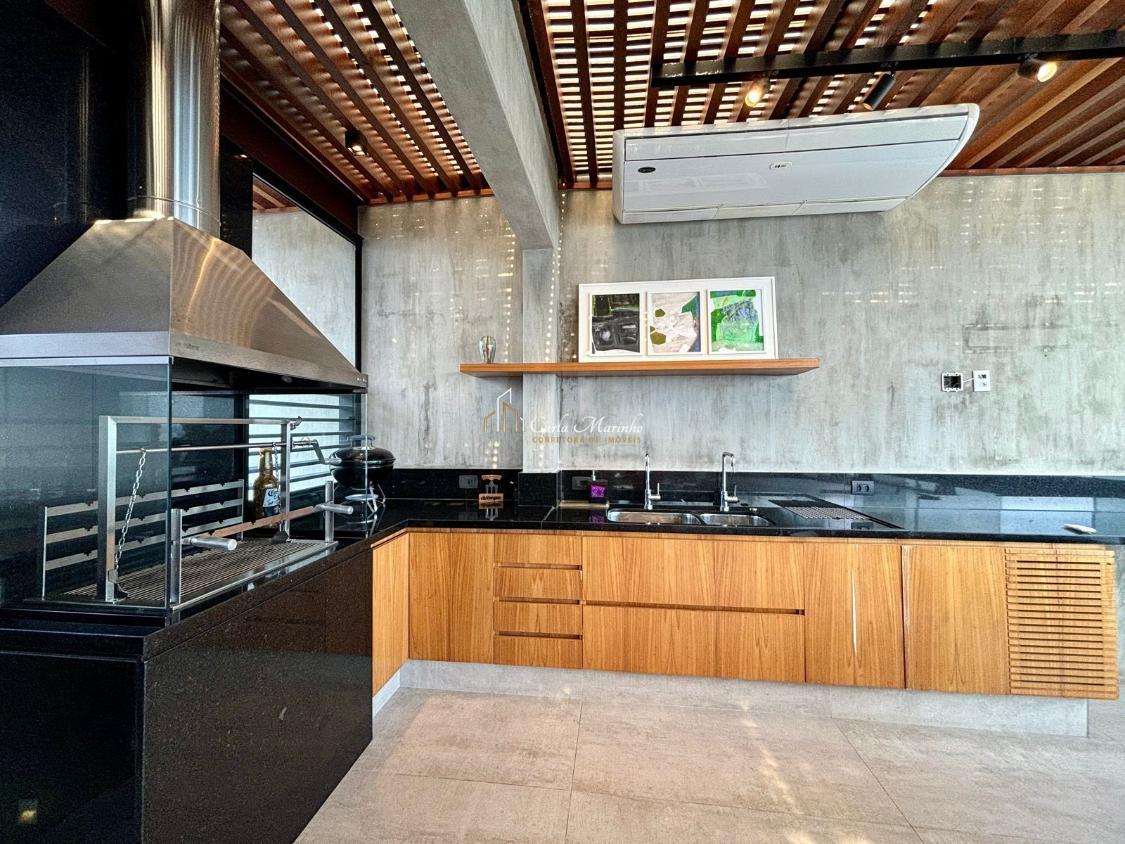 3 º Pavimento: Lounge com TV ,churrasqueira, banca de apoio, e cozinha com vista frontal ao Mar.