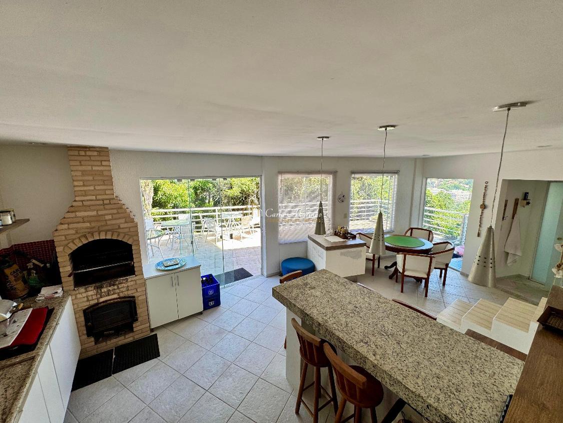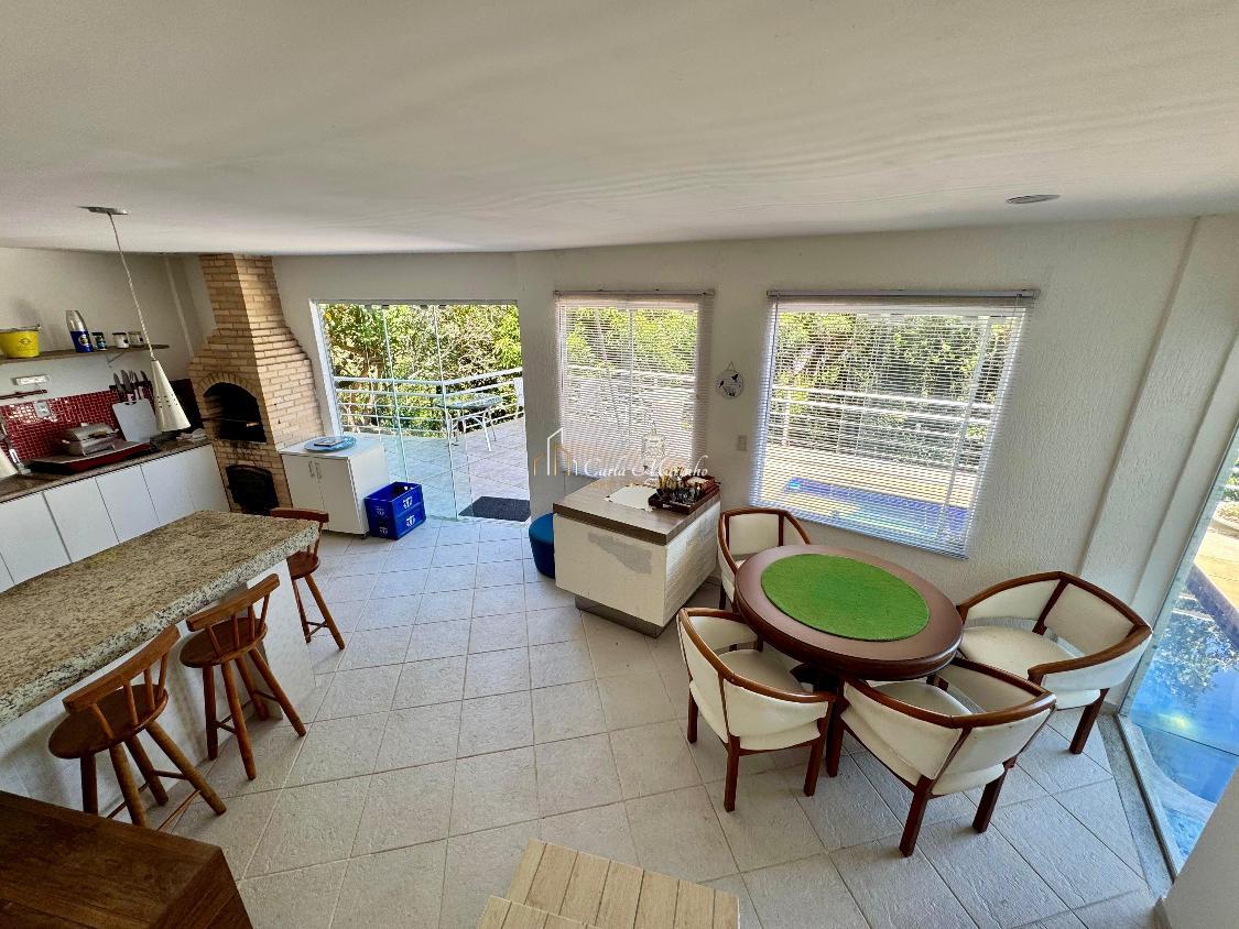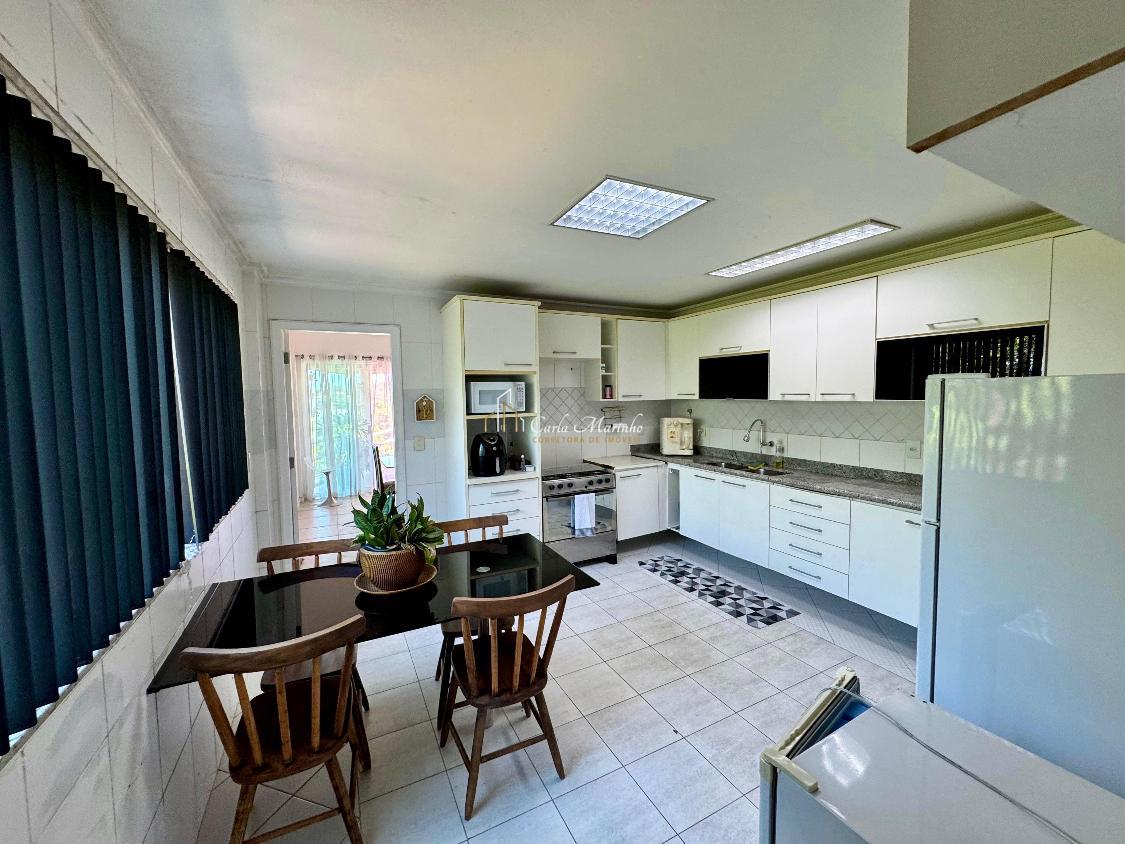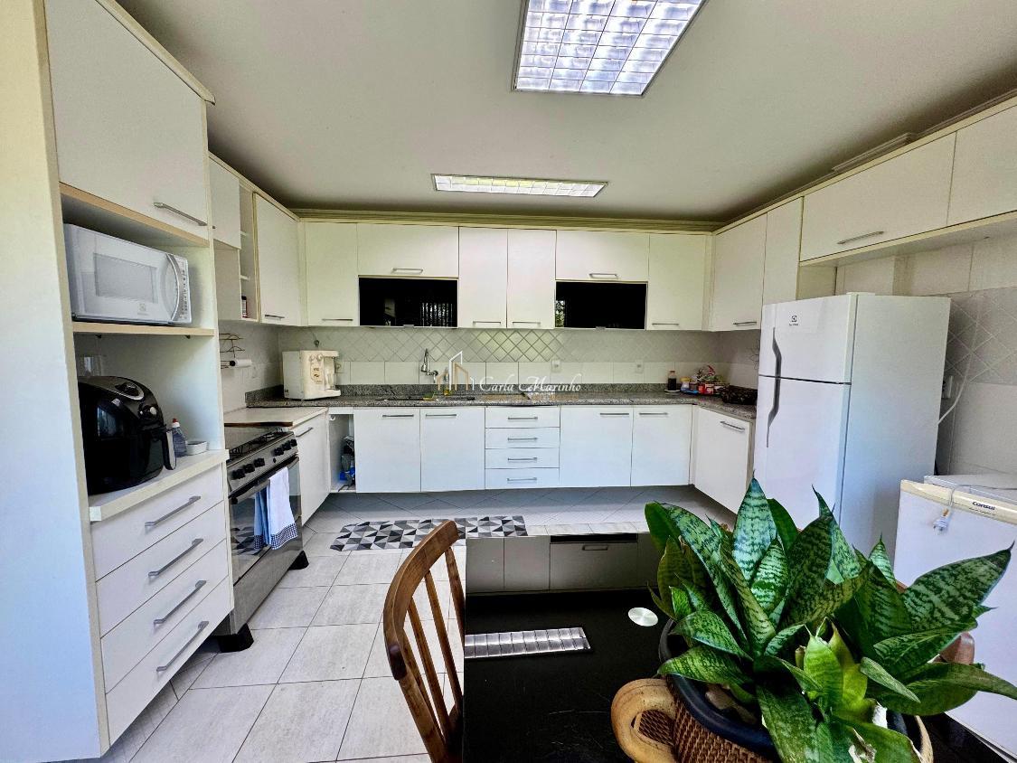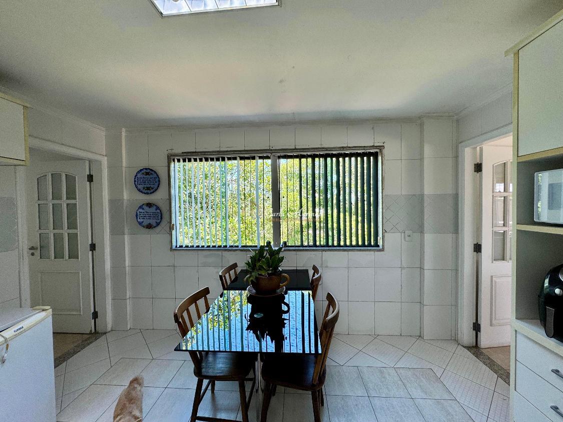 Cozinha toda planejada com armários embutidos de qualidade, sala de jantar e uma varanda, dependências de empregada, área de lazer completa, piscina, sauna, churrasqueira, forno a lenha, 295,m2 de área construída, 790m2 de terreno para o verde.